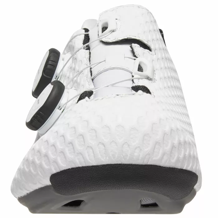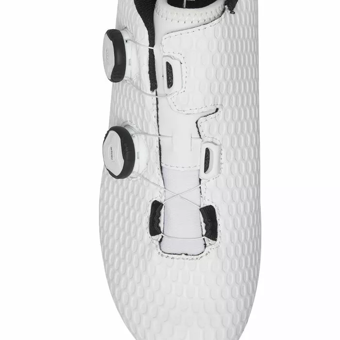 This extreme comfort is complemented by an integrated heel system for added stability. The fabric on the inside of the heel features a directional weave, developed to prevent slipping when you’re putting the hammer down. The shoe is built on an incredibly stiff carbon sole to ensure no watts are wasted. An aerodynamic upper finishes the shoe in style.