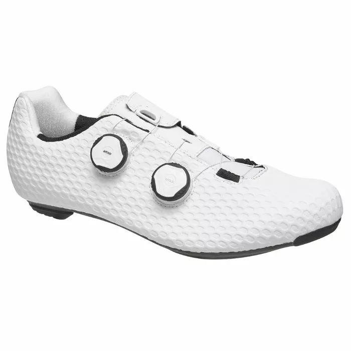The Aeron Lab Carbon Road Shoe Dial has been carefully crafted to deliver a competitive edge for elite athletes and those looking to push themselves further on the bike. dhb has incorporated a shaped tongue to gently grip your foot, while the Atop dial-closure system completes a snug but unrestrictive fit and offers on-the-fly adjustment.