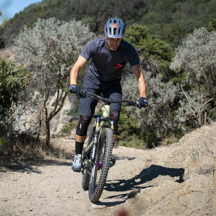 A front tyre washes out. Handlebars clip a tree as you squeeze down twisty singletrack. Or maybe your ambition surpassed your skills. When you’re mountain biking it’s very likely you’ll get caught up in an unexpected crash. The Knee Guard AirFlex Ultralite, with its CE certified knee protection should keep you riding with knees unbloodied.