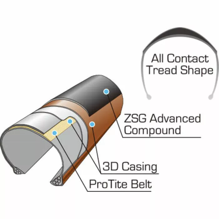 Equipped with a 3D casing and ProTite Belt, this super-protective tyre works hard to stop rips and ruptures from hindering your journey. Shaped with an All Contact tread for top traction and minimal rolling resistance, this pacy Panaracer tyre also features ZSG (Zero Slip Grip) to keep you upright and unrivalled from start to finish.
